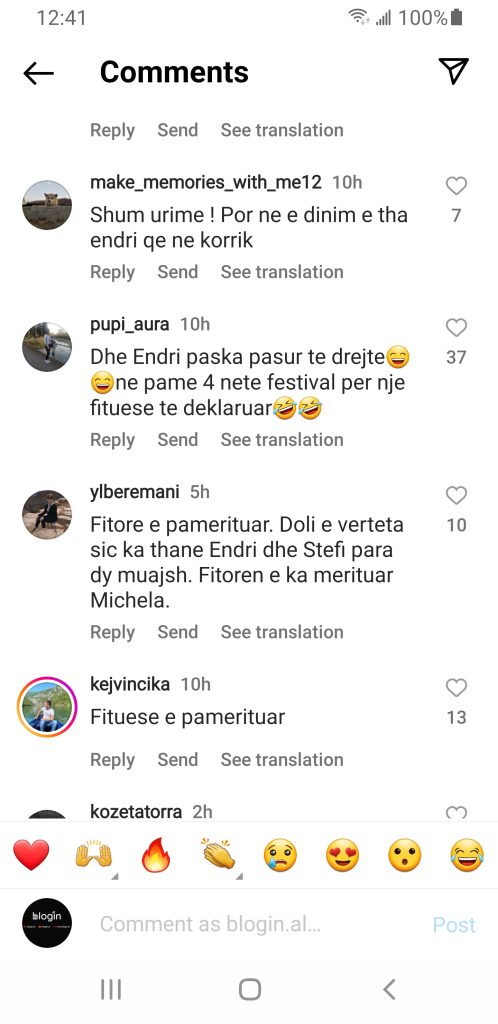 Gjithashtu njerëzit kanë vëshruar me komentet e tyre në Instagram ku shprehen se Endri ka pasur të drejtë.