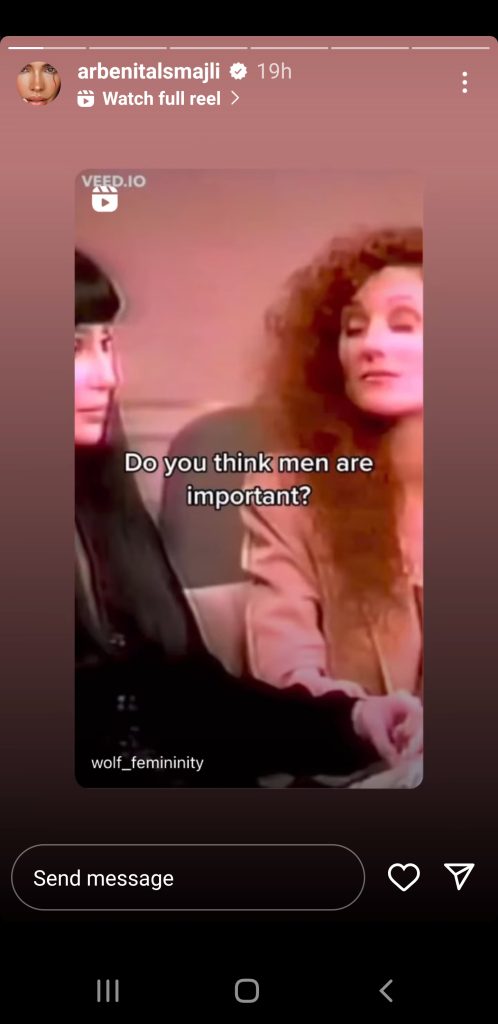 Modelja ka thyer heshtjen, madje në një mënyrë shumë sfiduese. Arbenita ka ndarë një video në Instagram e saj ku thuhet: “A mendon se janë të rëndësishëm burrat? Për çfarë?”