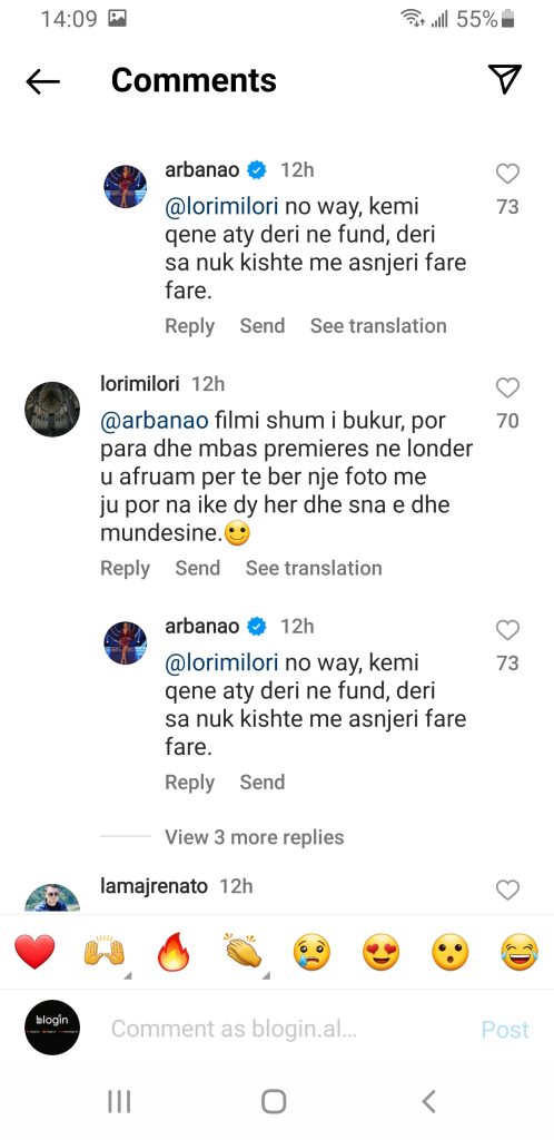 “Filmi shumë i bukur, por para dhe mbas premierës në Londër u afruam për të bërë një foto me ju, por na ikë dy herë dhe s’na e dhe mundësinë”.