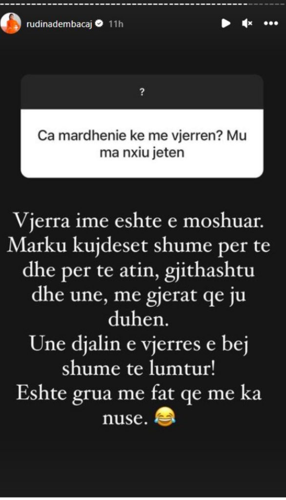 Edhe më parë Rudina është pyetur nëse do vjehrrin apo vjehrren dhe përgjigja e saj ishte: