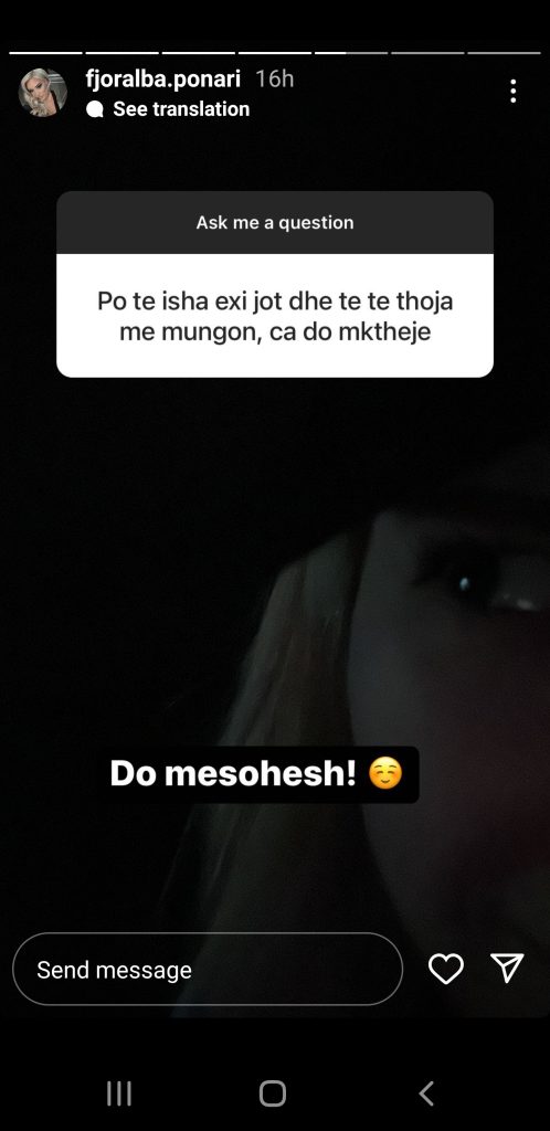 Mirëpo dikush e ka pyetur Fjorin nëse do t’i shkruante ish i dashuri i saj ( në këtë rast ndjekësi) dhe do t’i shprehej se i mungon, çfarë mesazhi do t’i kthente ajo?