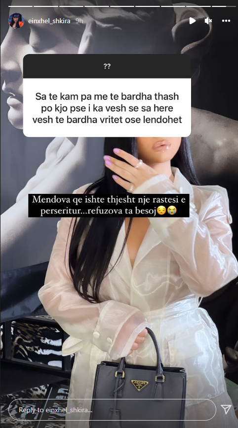 Einxhel ka publikuar këmbën e lënduar duke mos treguar se çfarë i ka ndodhur konkretisht ndonëse duket se nuk bëhet fjalë për diçka serioze. “Mendova se ishte thjesht një rastësi e përsëritur, refuzova ta besoj”– i përgjigjet ajo një ndjekëseje e cila i thotë se sa herë vesh të bardha lëndohet.