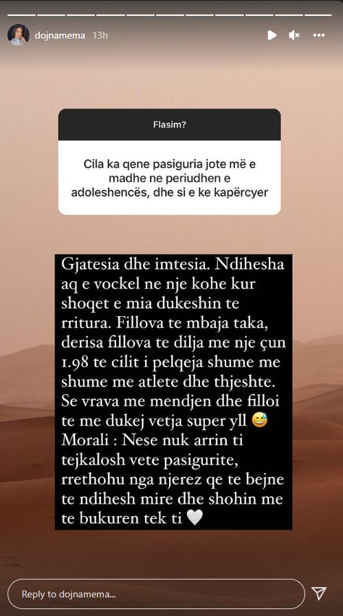 Cila ka qen pasiguria më e madhe e Dojnës në adoleshencë?