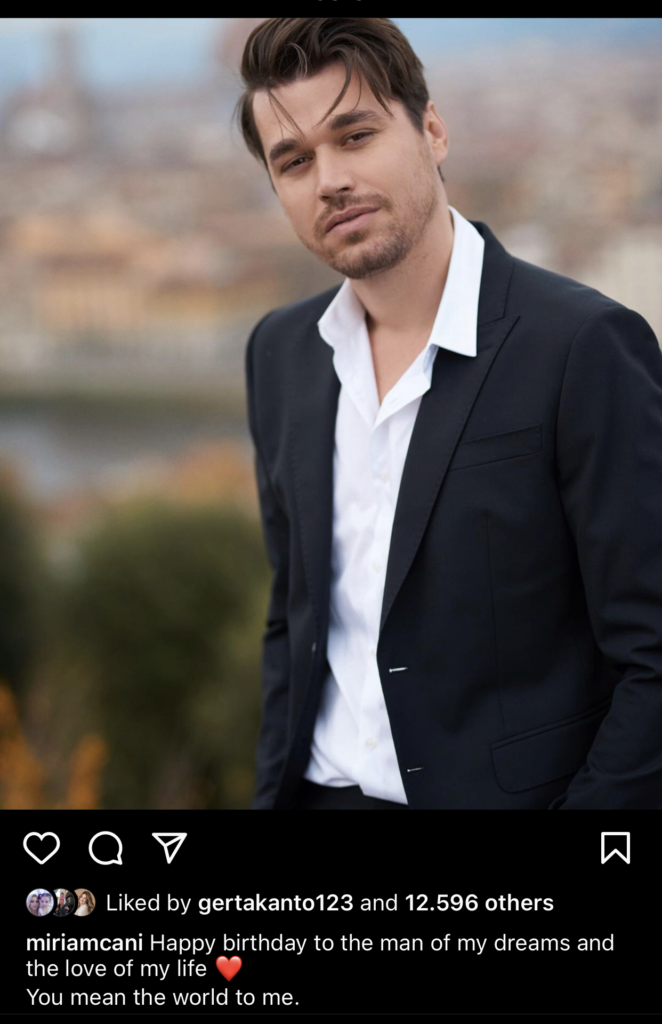 ‘Gëzuar ditëlindjen burri i ëndrrave të mia dhe dashurisë së jetës sime. Ti je bota për mua”, ka shkruar Miriam Cani krahas fotos.’