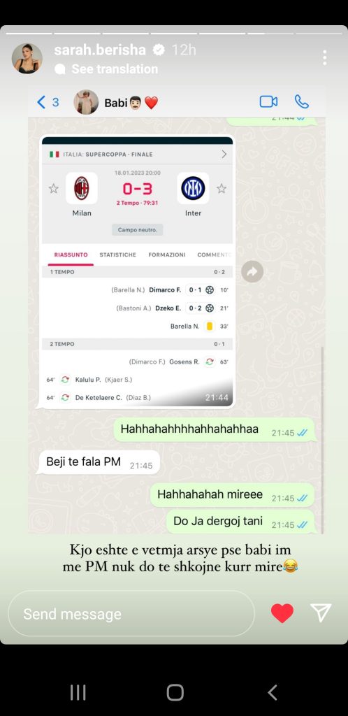 Krah mesazheve Sara shkruan “Kjo është e vetmja arsye pse babai im dhe PM nuk do shkojnë kurrë mirë”.
