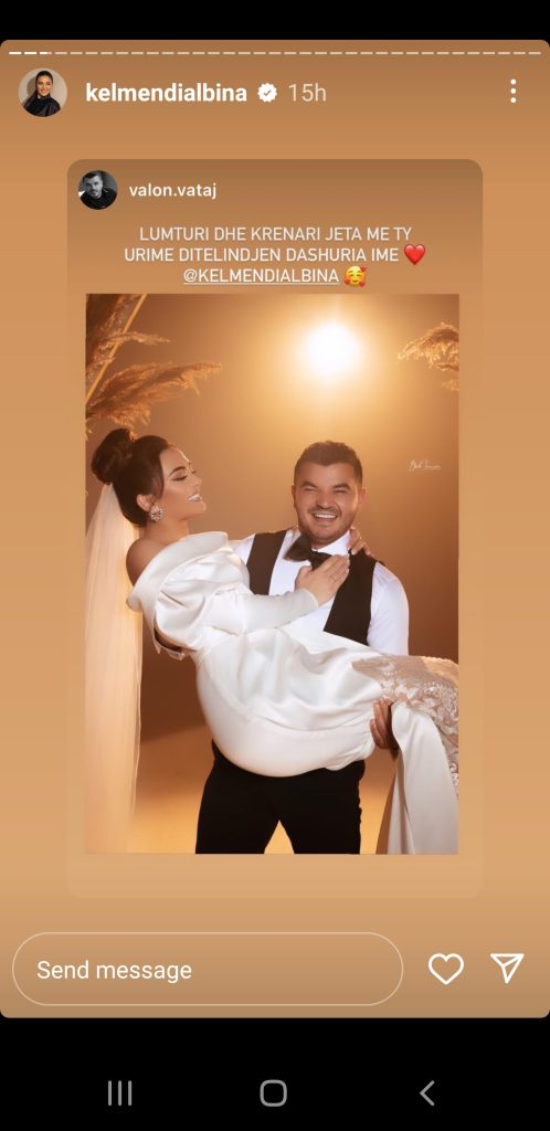 Albina urimin e parë e mori nga bashkëshorti i saj i cili ndër të tjera shkruan: “Lumturi dhe krenari jeta me ty….”. Urime ditëlindjen dashuria ime.