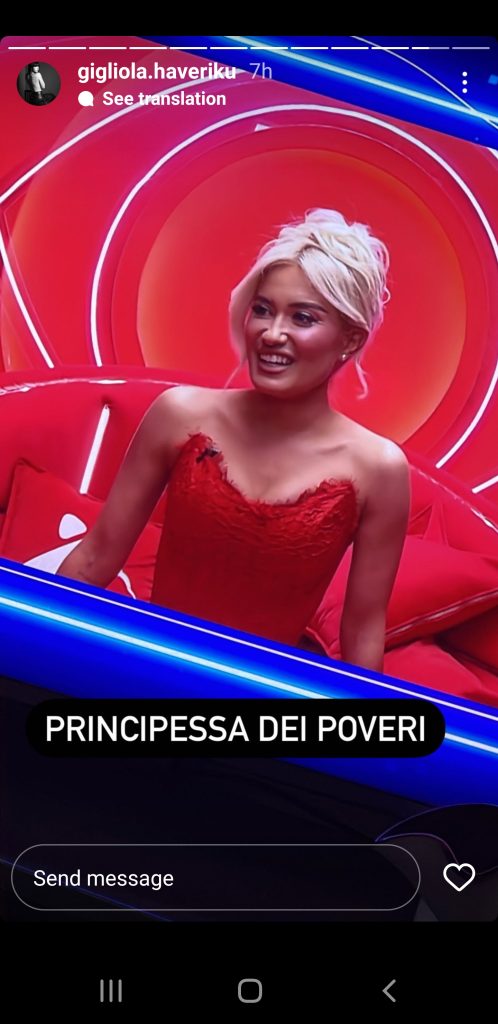 Gigliola Haveriku ish partnerja e Amos Zaharia duket se në këtë “Big Brother Vip Albania” nuk bën aspak tifo për ish partnerin e saj. Gigliola deri tani nuk ka bërë asnjë koment për Amosin por ama nuk kursen me “batuta” njerëzit që rrinë afër tij. Të njëjtën gjë ka bërë edhe me Dea Mishel e cila është për momentin “crush-i” i Amos Zaharia.