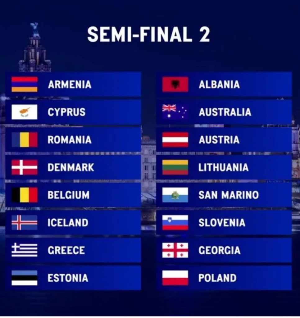 Shqipëria do të jetë në gjysmëfinale me Armeninë, Qipron, Danimarkën, Estonin, Greqinë, Islandën, Rumaninë, Australinë, Austrinë, Gjeorgjinë, Lituaninë, Poloninë, San Marinon dhe Slloveninë.