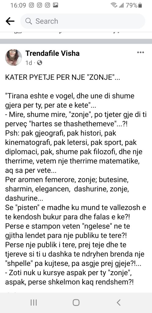 – Zoti nuk u kursye aspak per ty “zonje”, aspak, perse shkelmon kaq rendshem?!