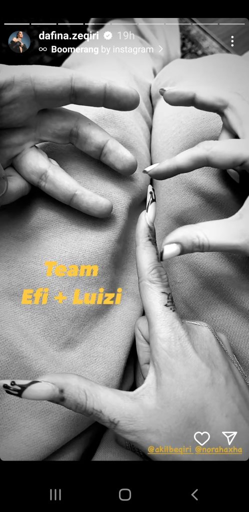 Në një fotografi që ka shpërndarë me ndjekësit në InstaStory, ajo thotë se është me ekipin e Efit dhe Luizit.