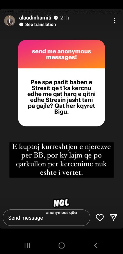 Në një bisedë të ashpër që patën u tha se babai i Stresit e ka kërcënuar produksionin dhe ka tentuar të futet në shtëpi.