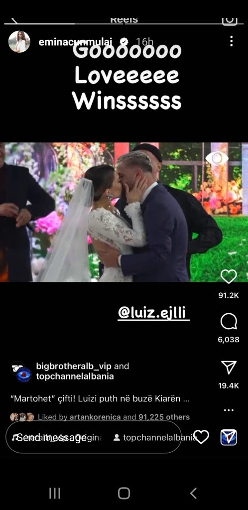 Mbrëmë, dasma e Luizit dhe Kiares megjithëse ishte lojë u komentua shumë në rrjet duke u klikuar me mijëra herë e duke u shpërndarë edhe nga fytyra të njohura publike.