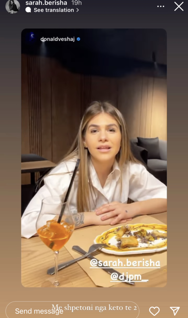 Ishte Donaldi ai që solli disa pamje nga darka e tyre e përbashkët ku e ngacmonin Sarën me shaka duke e pyetur pse akoma nuk e ka llogarinë e Instagramit të verifikuar, ashtu siç e ka ai dhe PM.