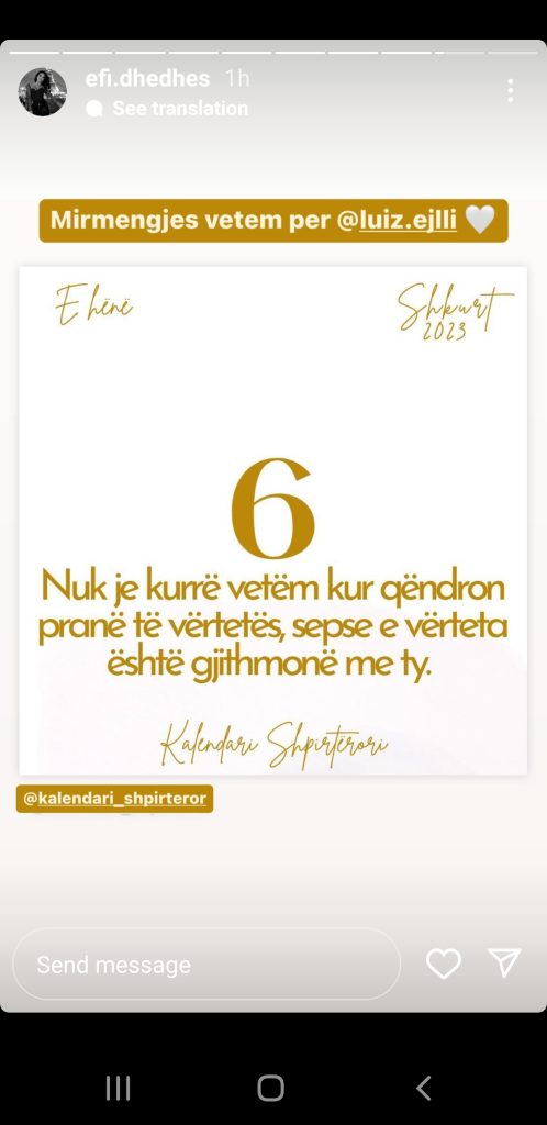 Ish-banorja e “Big Brother VIP2” ka postuar një shprehje dhe krahas saj shkruan: “Mirëmëngjes vetëm për Luiz Ejllin”, duke etiketuar këngëtarin e njohur.