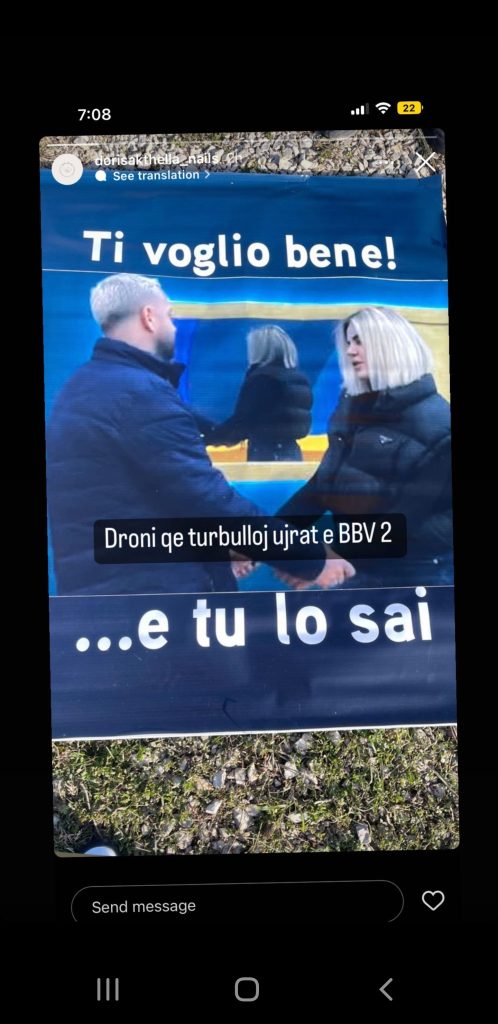 “Unë të dua dhe ti e di,”-droni me këtë mbishkrim i dërguar ditën e sotme mbi shtëpinë e “Big Brother Vip Albania” për Luiz Ejllin, ishte nga Kejvina Kthella. Këtë e ka konfirmuar vetë motra e modeles Dorisa Kthella, me anë të disa postimeve në Instagram.