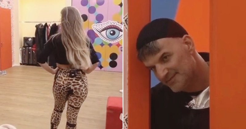 Ndërkohë Olta ka qenë duke kërcyer, me streçe leopard dhe lëvizje shumë sensuale pas derës kamerat kanë kapur gazetarin Bledi Mane duke e “përgjuar”.