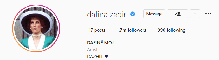 Portali online, “Express Rozë” ka bërë një listë të 10 këngëtarëve më të ndjekur në “Instagram”.