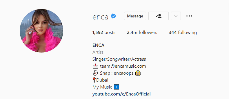 Vitin e kaluar nga statistikat për 10 artistët shqiptar më të ndjekur në rrjetin social “Instagram”, printe këngëtarja, Enca Haxhia me mbi 2.3 milionë ndjekës, e që tani ka arritur në mbi 2.4 milion, kështu duke grumbulluar mbi 100 mijë ndjekës për një kohë të shkurtër.