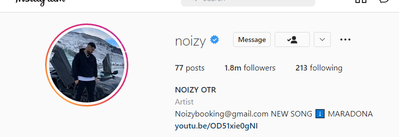 Ndërsa, nga artistët shqiptar më i ndjekuri në rrjetin social “Instagram”, është reperi Rigels Rajku i njohur me nofkën “Noizy”, i cili numëron mbi 1.8 milionë ndjekës dhe po ashtu është mjaft aktiv në këtë rrjet social ku publikon vazhdimisht fotografi e video të ndryshme nga koncertet që zhvillon. Së fundmi, ai ka paralajmëruar një koncert që do të mbahet në muajin gusht të këtij viti, e që sipas tij do të jetë më i madhi ndonjëherë në trojet shqiptare.
