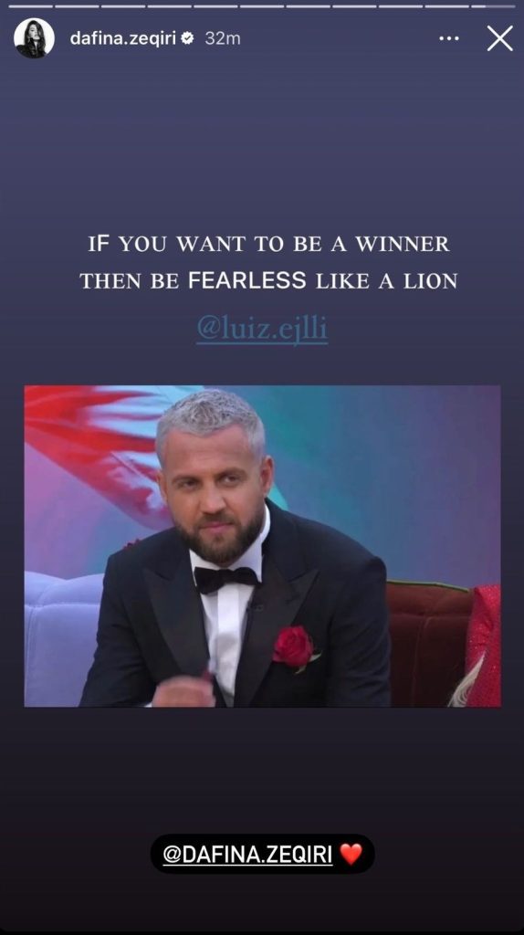 “Nëse dëshiron të jesh fitues, bëhu i patrembur si një luan”, ka shkruar ajo, duke iu bashkuar keshtu edhe ajo komenteve te shumta nga personazhet publike qe flasin per nje emer, rreth fituesit t ketij edicioni.