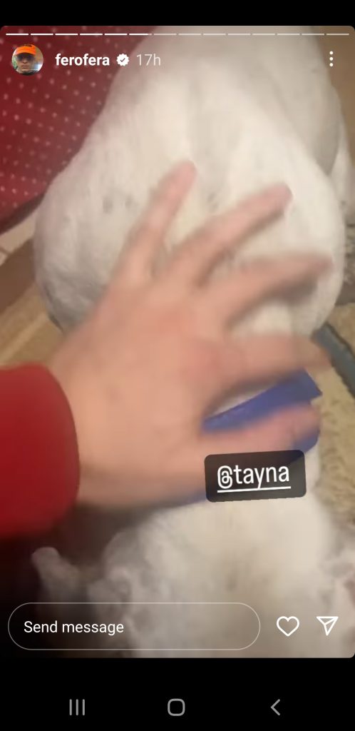 Në një video të ndarë në Instastory, Fero tregon se ka gjetur një qenushe endacake në rrugë.