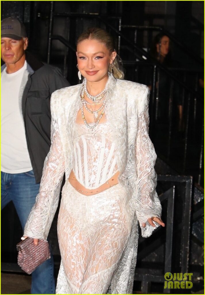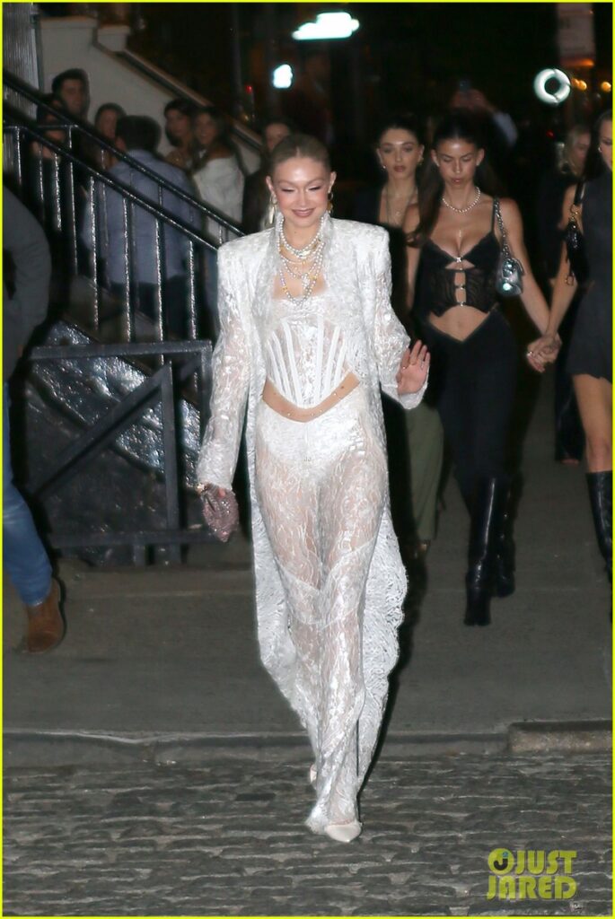 Gigi ishte e shoqëruar nga familja e saj, duke përfshirë motrën Bella dhe vëllain Anwar, si dhe disa miqsh të saj të famshëm si Emily Ratajkowski , Blake Lively , Martha Hunt dhe Helena Christensen.
