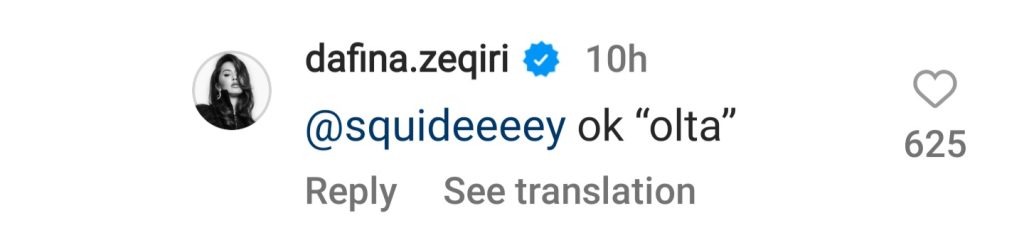 “Ok Olta”, shkroi Dafina teksa ka etiketuar profilin që la komentin.