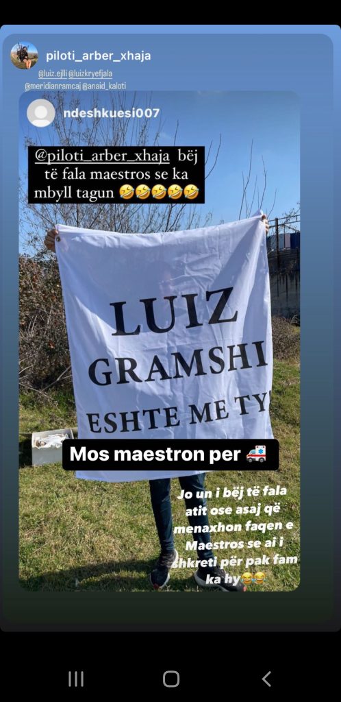 “Bëji të fala Maestros se ka mbyllur tag-un“, ndërsa krahas postimit ka shkruar: “Unë i bëj të fala atij ose asaj që menaxhon faqen e Maestros, se ai i shkreti për pak famë ka hyrë.”