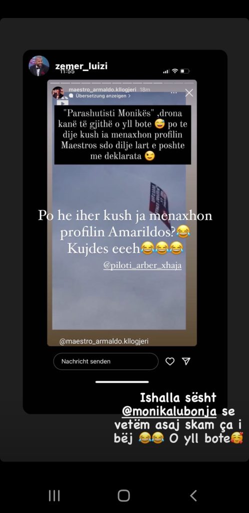 “Parashutisti i Monikës, drona kanë të gjithë o yll bote. Po të dije kush ia menaxhon profilin Maestros, nuk do dilje lart e poshtë me këto deklarata”.
