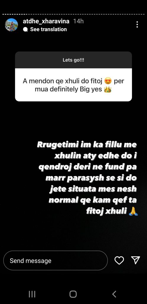 Rrugëtimi im ka filluar me Xhulin aty edhe i qëndroj deri në fund, pa marrë parasysh si do të jetë situata mes nesh. Normal që kam qejf që ta fitojë Xhuli