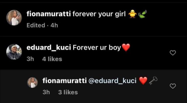 Ajo quhet Fjona dhe është nga Kosova. Në një foto në Instagram ku ajo ka shkruar “Përgjithmonë vajza jote”, Edi ia ka kthyer “Përgjithmonë djali yt”.