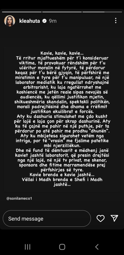 Ai e kishte mbështetur atë pas dy lavamanëve në banjë dhe nuk e lejonte të largohej, gjersa Kiara mundohej të bënte rezistencë për të mos i folur pasi e tillë ishte loja.