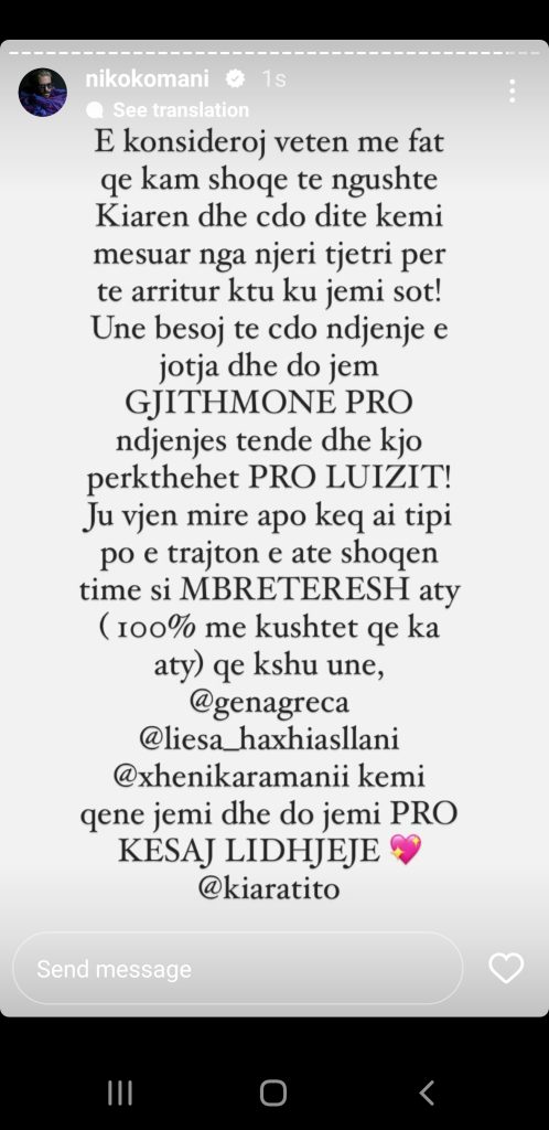 “Kjo përmbledhje e shkurtër dhe cinike që për ty Kiara Tito duhet të ishte avantazh por të erdhi si rrufe në qiell të hapur. Ku janë titujt pozitivë dhe mbështetës dhe suportues që kanë bërë për ty të gjithë? Pashë veten në atë përmbledhje dhe të gjithë e dini që nuk ka lidhje fare me përmbledhjen negative që t’u transmetua. Dhe pastaj të bëjnë moral se duhet të vazhdosh përpara. Por asgjë nuk bënë veçse ushqyen cyber bullying ndaj teje. A sa bukur a”, ka shkruar Klea.