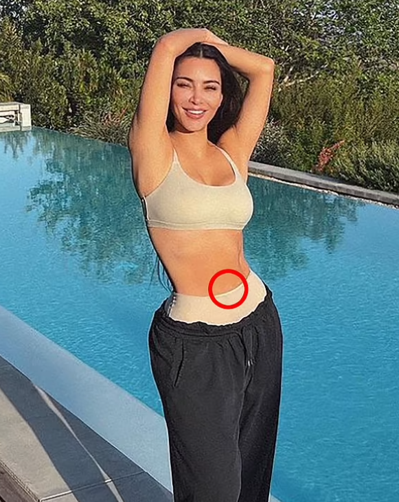 Ylli 41 vjeçar ekspozoi belin e saj për tu patur zili ndërsa u shfaq e veshur me reçipeta sportive ngjyrë bezhë dhe një palë tuta teksa pozonte pranë pishinës. Por fansat e saj duken shumë të shkathët dhe i kanë analizuar me kujdes fotot duke vënë re se kërthiza e saj nuk duket.
