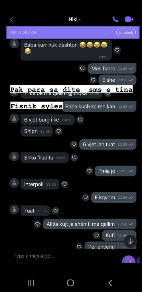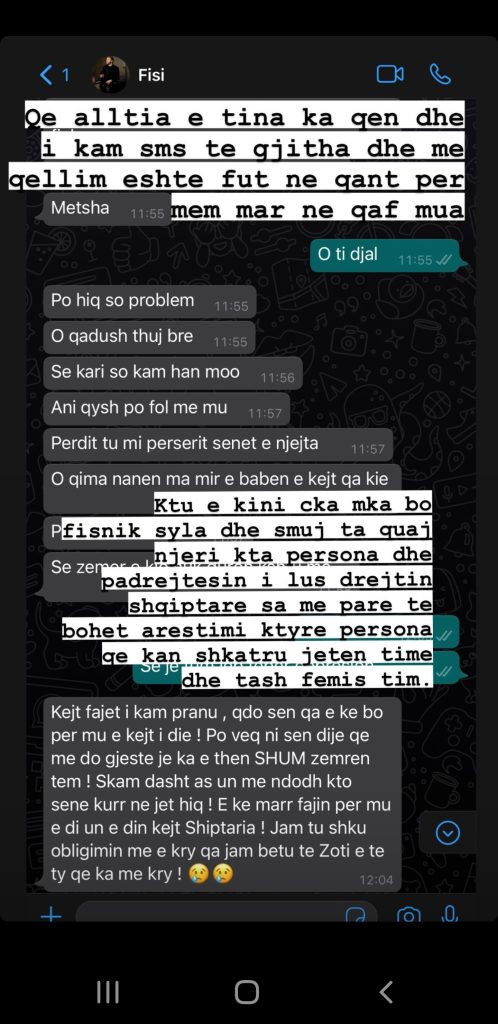 Rasti është në Eulex. Dua të ju tregoj çfarë ka heq Fjolla prej këtyre hienave, shumë e keni gjykuar paragjykuar. Kam qenë e kërcënuar derisa edhe burgun kur e kam bërë midis Lipjanit më kanë vënë helm. Kam qenë duke vdekur. Hera e fundit kur ka ndodhur helmi tash më ka vënë ky Ildi Qamo është diku në burg në Itali dhe ka ikur para tre muajve. Ky person është i lidhur me persona që kanë të bëjnë me komandantë në burg pesë veta, janë bërë bashkë. Kanë dashur të ma qesin fëmijën nga sistemi. Kam qenë tre muaj në lidhje me të, më ka vënë helm dhe ka dashur që të vdes.