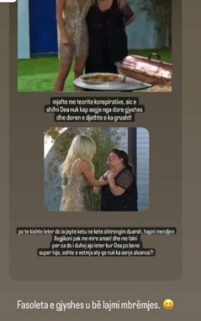 Por nuk ka munguar as reagimi i familjarëve të Deas të cilët në një postim në instastory shkruajnë se “fasoleta e gjyshes u bë lajmi i mbrëmjes”, duke treguar kështu se nuk ka pasur thyerje rregullash.