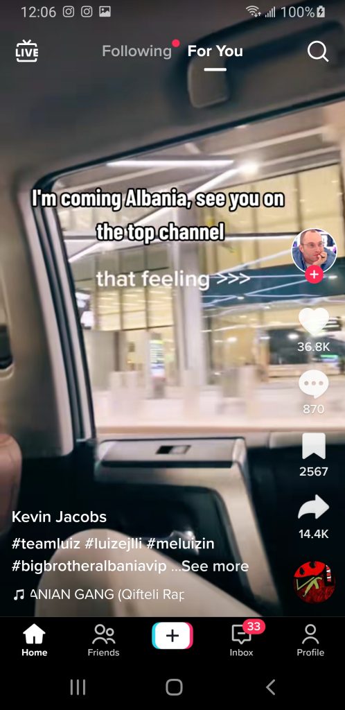 Në një postim të fundit të bërë në TikTok, Jacobs njofton se po vjen në Shqipëri dhe së shpejti do ta shohim në Top Channel.