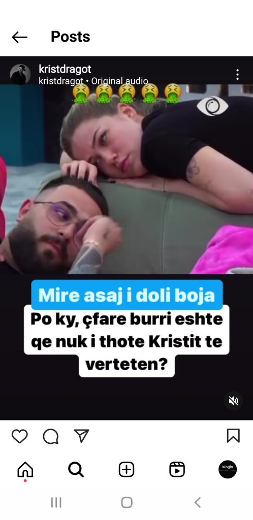 Ndër tjera aty shkruhet: “Mirë asaj i doli boja.. Po ky, çfarë burri është qe nuk i thotë Kristit të vërtetën?” – ndërsa në sektorin e komenteve shumë ndjekës dhe fansa të konkurrentit mbanin anën e tij.