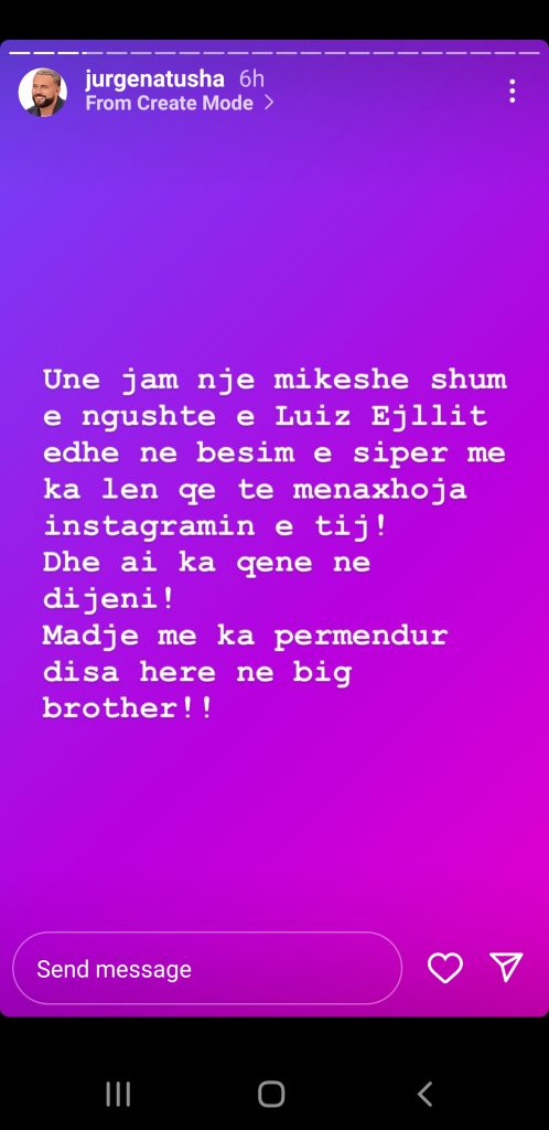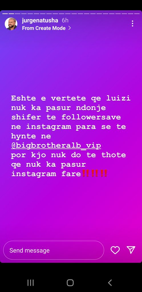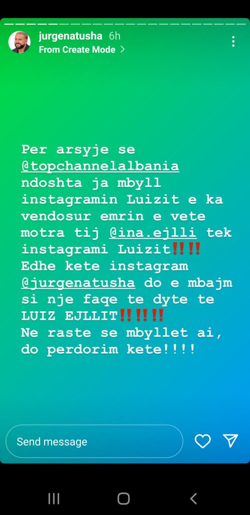 “Jurgena tregon se arsyeja që instagrami i Luizit është kthyer në emer të motrës se tij është sepse Top Channel e ka kërcenuar që do e hedhi në gjyq sepse donin të merrnin instagramin e Luizit ta menaxhonin vet.“