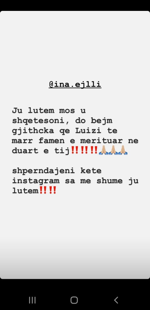 Kujtojmë se sot motra e Luizit, Ina e ka marrë në dorë Instagramin e të vëllait dhe ka ndryshuar emrin duke vendosur emrin e saj.