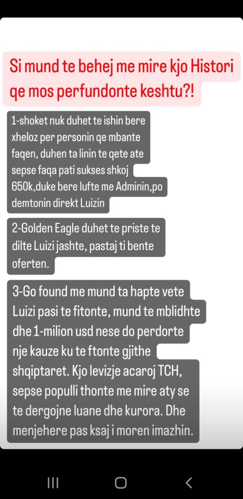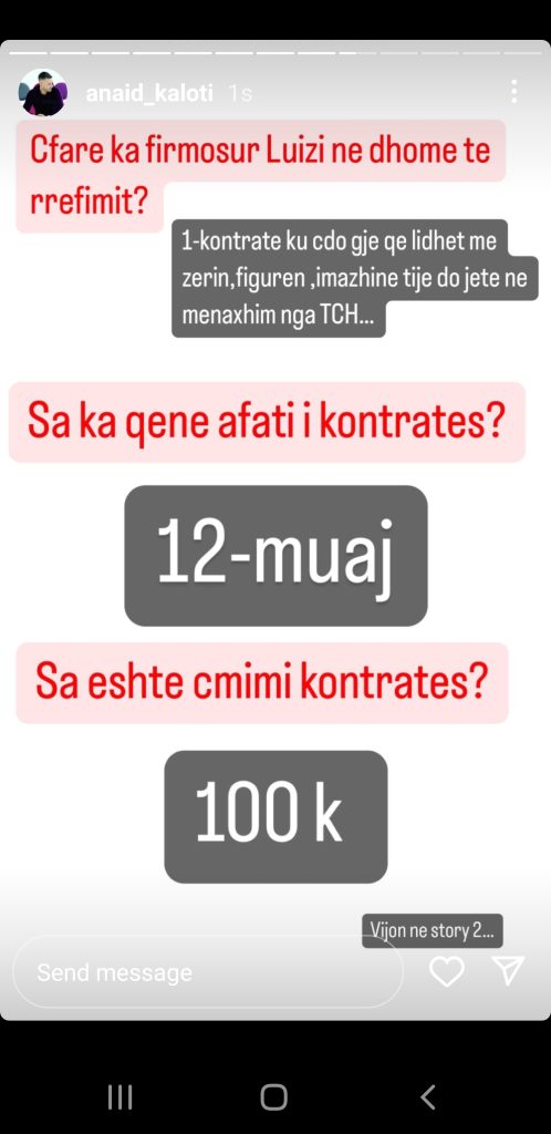 Ai shkruante se kjo është arsyeja pse janë bllokuar fotot dhe informacionet nga Instagrami zyrtar i Luizit, duke shtuar se nuk i është komunikuar se në çfarë forme dhe akti juridik është kryer kjo.
