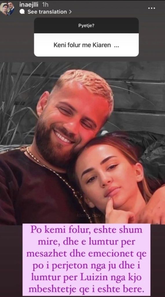 Dhe këtë gjë na e ka konfirmuar vetë motra e këngëtarit, Ina e cila nëpërmjet një pyetësori që realizoi me ndjekësit në Instagram iu përgjigj pyetjeve të shumta të cilat kishin të bënin me Kiarën.