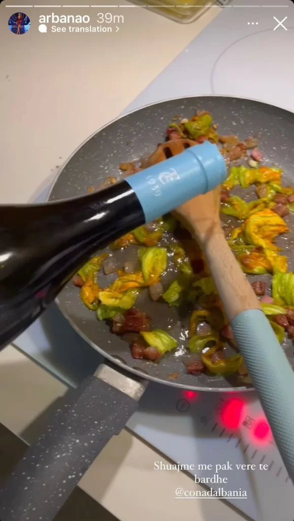 Po kështu, Arbana Osmani sugjeron ta shoqërojmë pjatën me verë të bardhë. Pas reagimeve, moderatorja u shpreh në një postim se bëhej fjalë për pançetë viçi, ndonëse njerëzit janë të bindur se një e tillë, nuk lëshon aq fort yndyrë.