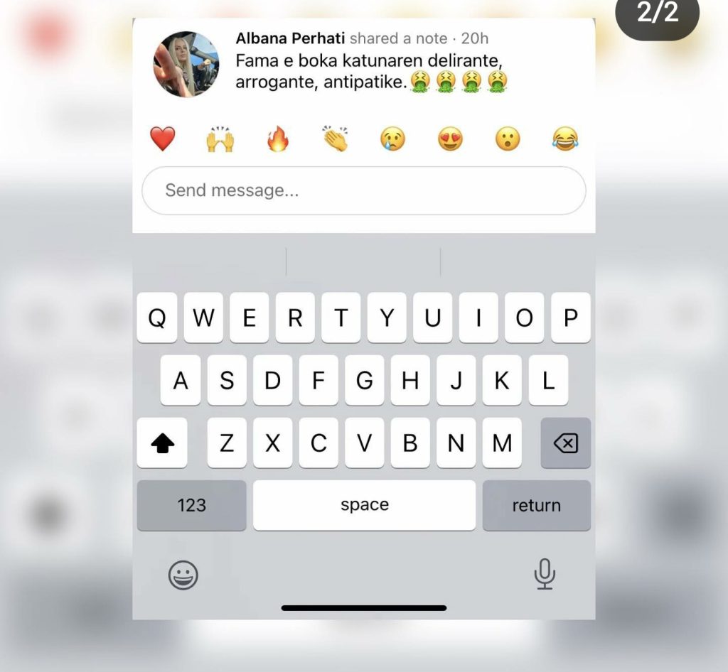 E njohur ndryshe si Bukra, Albana ka publikuar një status në Instagram ku shkruan: Fama e boka karunaren delirane, arrogante, antipatike.