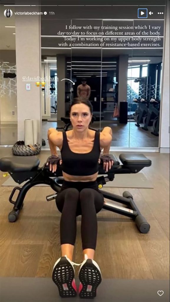 48 vjeçarja, ndau disa foto për ndjekësit në Insta Story teksa ushrohej në palestrën e saj, ku në njërën prej fotove, i pranishëm ishte dhe bashkëshorti Daivd Bechkam.