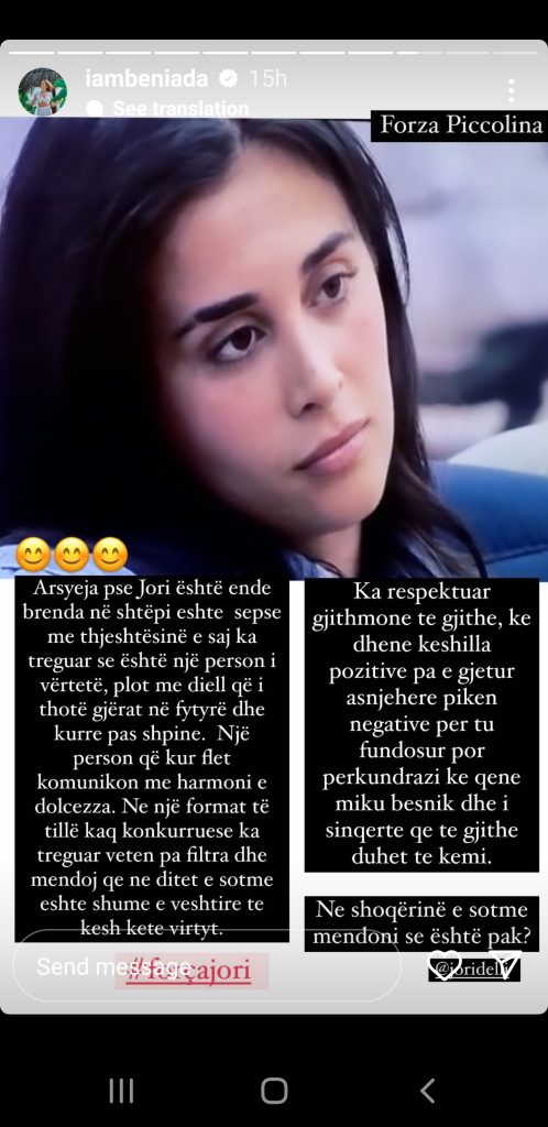 Përmes një InstaStory ajo ka postuar një fotografi të Jorit teksa ka shkruar fjalët më speciale për të.