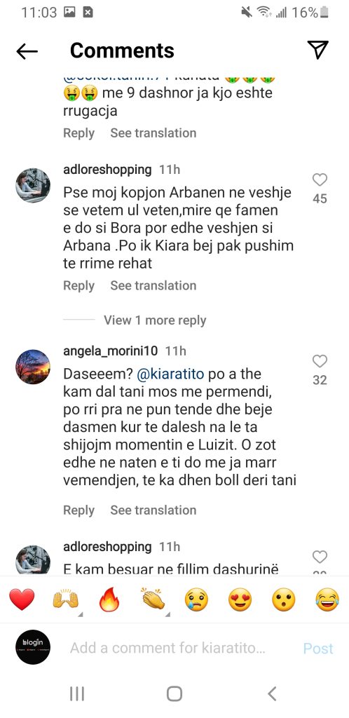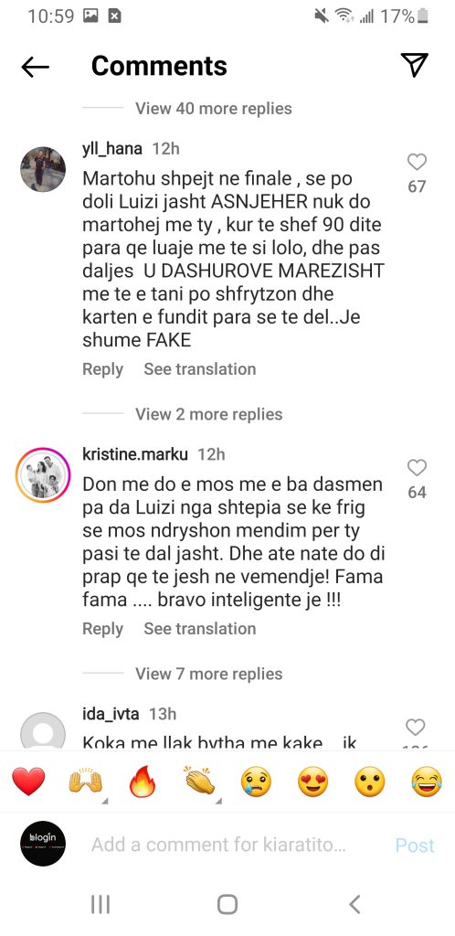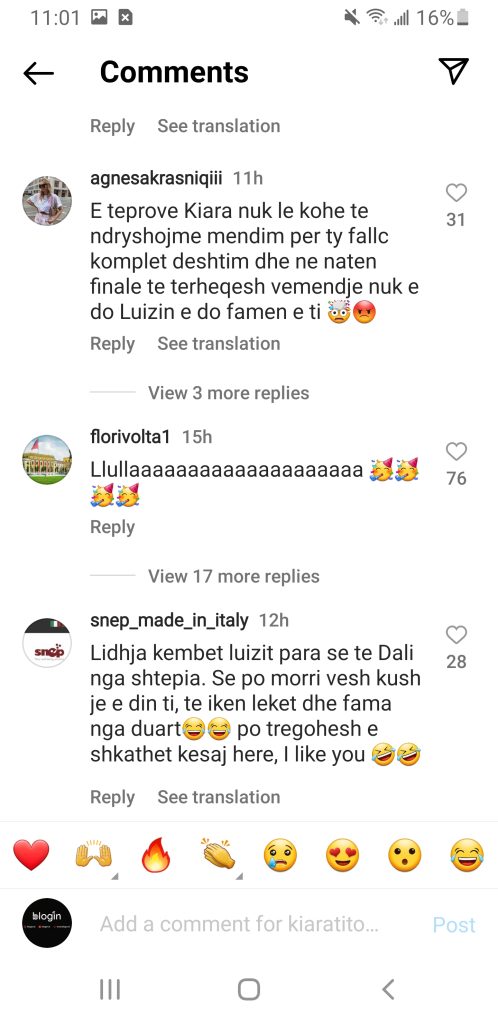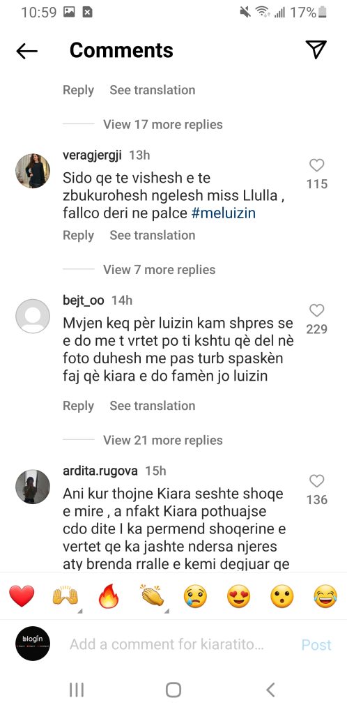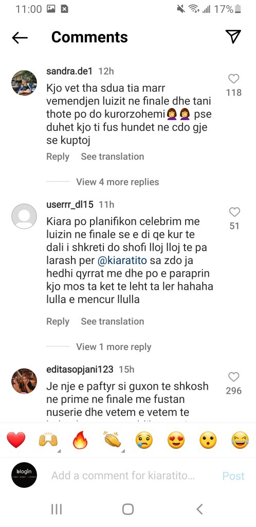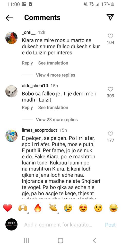 Në sektorin e komenteve fansat shihen të indinjuar me veshjen e Kiarës dhe i përmendin se Luizit nuk do i pëlqejë kjo paraqitje.