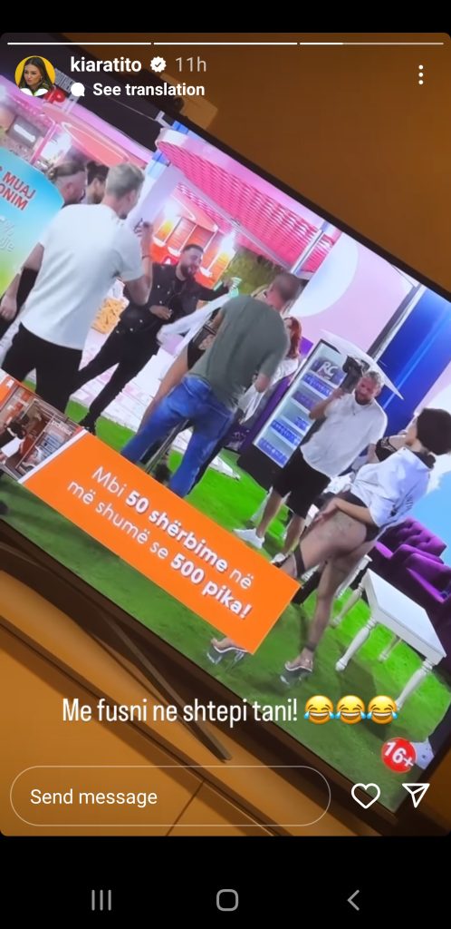 “Më fusni në shtëpi tani”- shkruan moderatorja duke i bashkangjitur disa emoji duke qeshur gjatë videos ku këngëtari shfaqej duke kërcyer me strptistet.