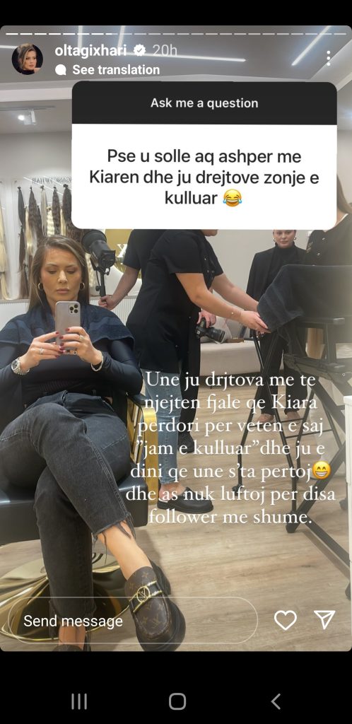 “Unë iu drejtova me të njëjtën fjalë që Kiara përdori për veten e saj “jam e kulluar” dhe ju e dini që unë s’ta përtoj dhe as nuk luftoj për disa ‘followers’ më shumë.”