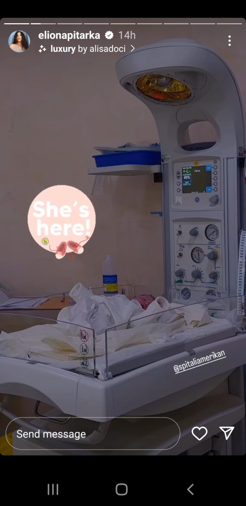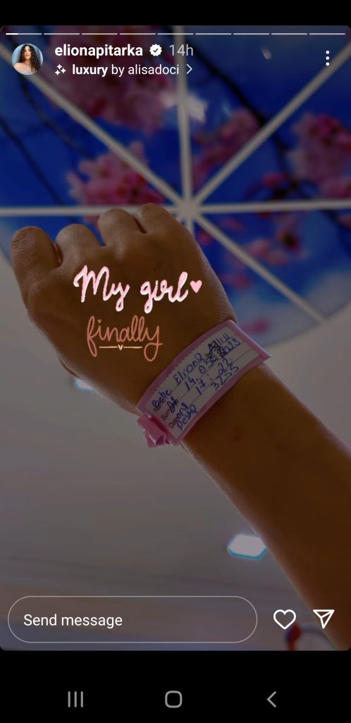 Lajmin e ëmbël e ka bërë vetë të ditur Pitarka teksa ka publikuar foton e parë të vogëlushes së saj të porsalindur dhe krahas postimit shkruan: “Ajo është këtu”. Deri më tani aktorja nuk e ka bërë ende të ditur emrin e vajzës së saj.